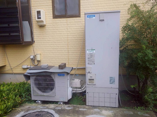 施工事例一覧 > 西多摩郡檜原村樋里 コロナ自然冷媒CO2家庭用ヒートポンプ給湯機ヒートポンプユニットCHP-DZ451K、貯湯ユニットCTU-37AZ1K エコキュート交換工事