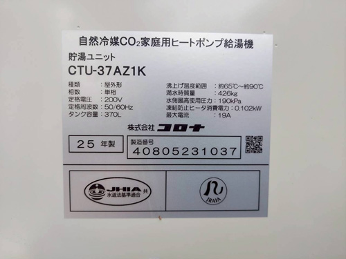 西多摩郡檜原村樋里 三菱電機自然冷媒CO2ヒートポンプ給湯機 貯湯タンクユニットSRT-HPTK37W5→コロナ自然冷媒CO2家庭用ヒートポンプ給湯機ヒートポンプユニットCHP-DZ451K、貯湯ユニットCTU-37AZ1K エコキュート交換工事
